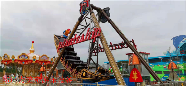 鄭州力美奇游樂設(shè)備有限公司--江西宜春高安市巴羅洛旅游度假區(qū)豪華轉(zhuǎn)馬、24座仿古海盜船安裝現(xiàn)場。
