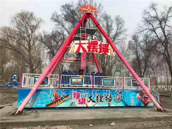 大擺錘是一種大型的游樂(lè)設(shè)備,常見于各大游樂(lè)園。游客坐在圓形的座艙中,面向外。大擺錘以壓肩作為束縛,配以帶作為二次保險(xiǎn)。座艙旋轉(zhuǎn)的同時(shí),座艙下面的推力器推動(dòng)著圓盤做單擺運(yùn)動(dòng)。大擺錘的運(yùn)行可以使置身其上的游客驚心動(dòng)魄。大擺錘屬于刺激型的大型游樂(lè)設(shè)備。