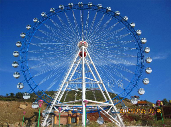 力美奇游樂生產(chǎn)的大型摩天輪,是一種大型轉(zhuǎn)輪狀的機(jī)械建筑設(shè)施,我們很常見到摩天輪存在的場合是游樂場(或主題公園),作為一種公園大型游樂設(shè)備,與云霄飛車、旋轉(zhuǎn)木馬合稱是“游樂園三寶”,摩天輪也經(jīng)常獨(dú)自存在于其他的場合,通常被用來作為會活動的觀景臺使用,并成為城市地標(biāo)建筑。