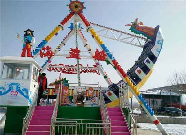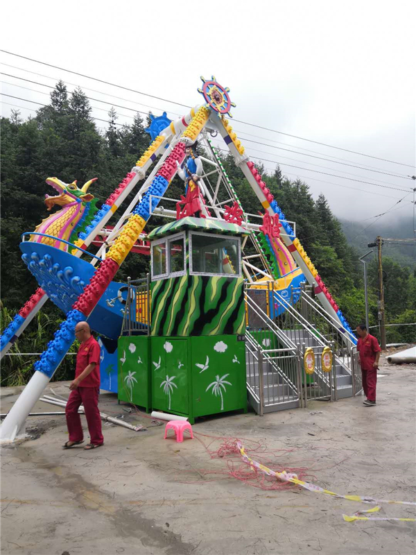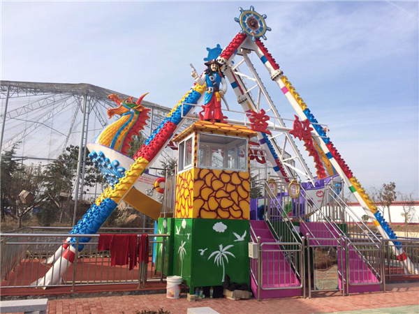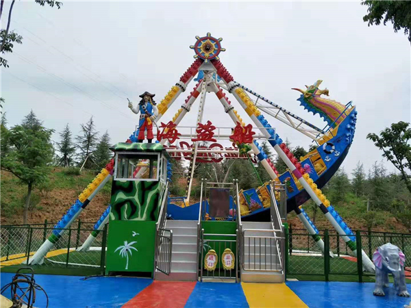 24座海盜船游樂設施因其外形酷似古時海盜船,有時刻準備戰(zhàn)斗的海盜船長,有眺望遠方的水手,故得此名。是一款水平軸反復擺動類的經典游樂設備,海盜船啟動后從緩慢擺動慢慢的急速擺動,游客乘坐于海盜船之上,隨著由緩至急的反復擺動,猶如置身驚濤駭浪的大海之中,時而沖上浪峰,時而跌入谷底,驚險刺激,挑戰(zhàn)人們心理承受能力的極限,有趣刺激,精美的外觀,深受游客的喜愛。