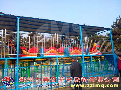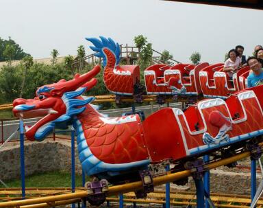 “滑行龍”游藝機(jī)以龍尾造型,整個(gè)列車由前后兩個(gè)傳動(dòng)部驅(qū)動(dòng),沿著兩個(gè)螺旋形軌道行駛,時(shí)而盤旋而上,時(shí)而急速下降,既有娛樂性、趣味性,又具有刺激性,老幼皆宜。乘坐過(guò)程中給游客帶來(lái)新奇、快樂的感覺。典雅的龍?jiān)煨秃途哂忻褡逄厣难b飾,更增添游人的興致,是一種深受群眾喜愛的游藝機(jī)。