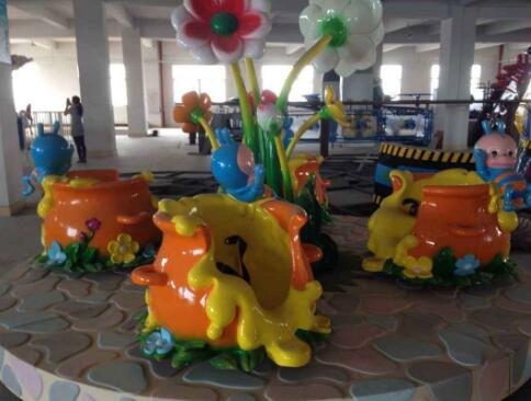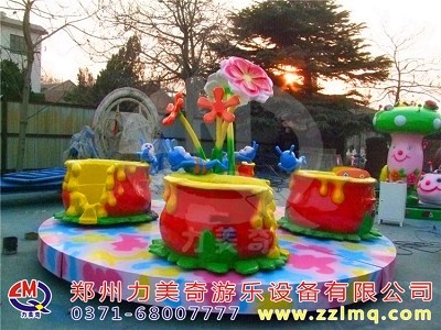 旋轉(zhuǎn)小蜜罐是旋轉(zhuǎn)咖啡杯游藝機(jī)的一種,造型精美可愛,深受小朋友的喜愛。“咖啡杯”是一款旋轉(zhuǎn)類游樂設(shè)備。乘客可以自由隨著設(shè)備的節(jié)奏轉(zhuǎn)動(dòng),也可以自己把握轉(zhuǎn)動(dòng)方向.乘客乘坐過程中轉(zhuǎn)動(dòng)出一種溫暖的感覺,轉(zhuǎn)動(dòng)中體驗(yàn)快樂。