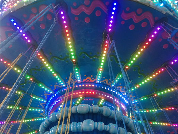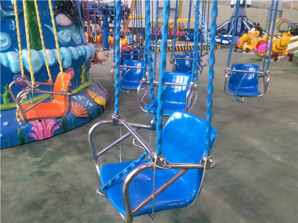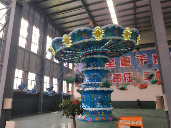 鄭州力美奇游樂研發(fā)生產(chǎn)的30座海洋系列搖頭飛椅是一種飛行塔類游樂設(shè)施,其造型以海浪、魚類、章魚、海豚、海草等海洋生物組成,在飛椅高速轉(zhuǎn)動(dòng)中,乘客放佛置身大海般,領(lǐng)略大海的神秘及刺激。