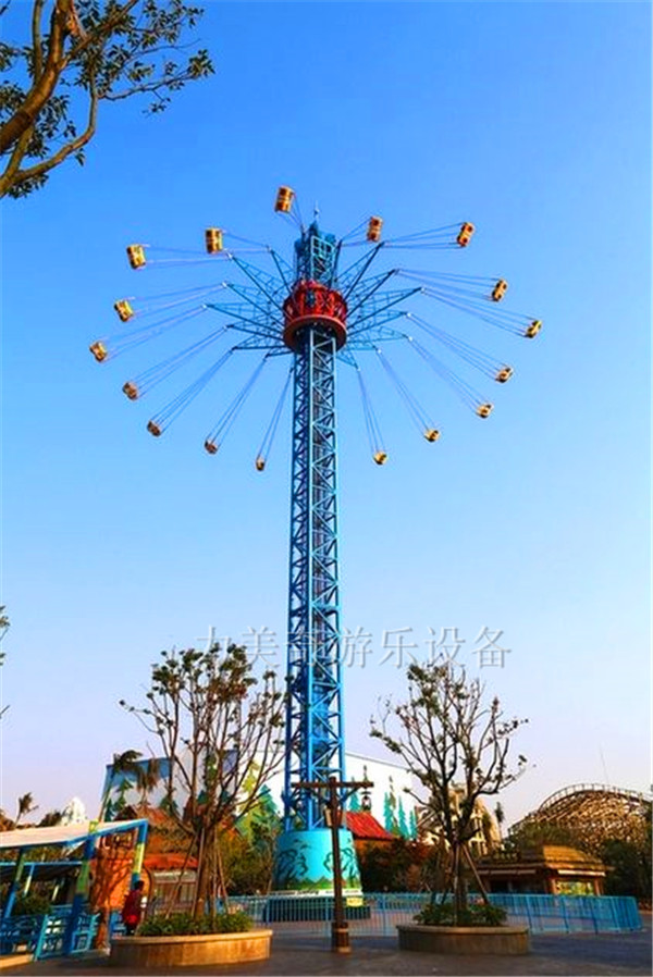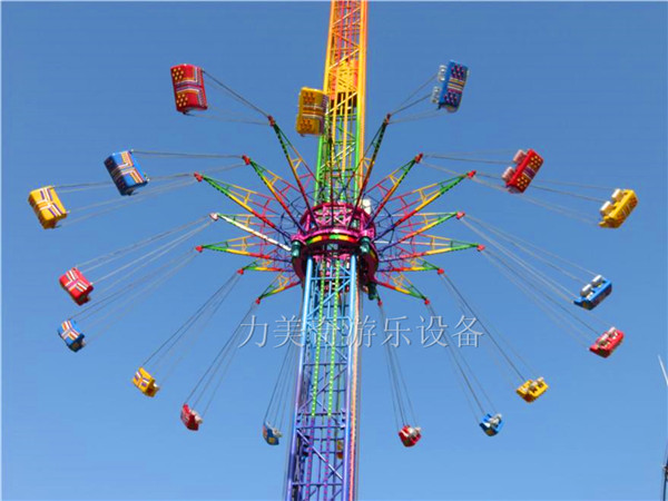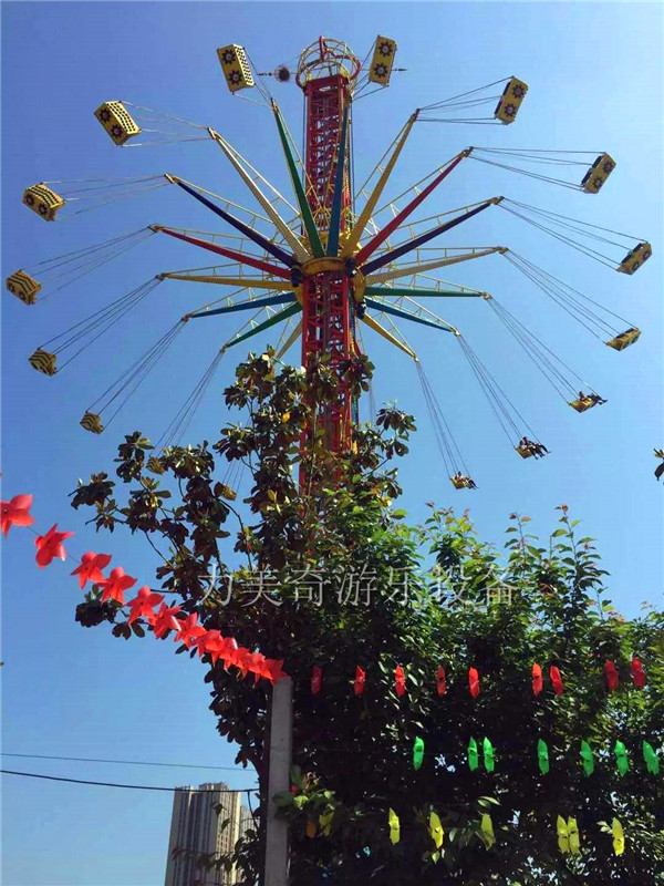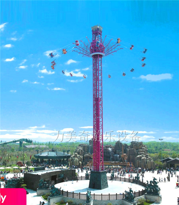 力美奇高空飛翔是目前世界上受歡迎的旋轉(zhuǎn)塔類的游樂(lè)設(shè)施,老少皆宜,外觀大氣,幾乎可以在所有的主題公園和游樂(lè)場(chǎng)內(nèi)找到它們的身影。高空飛翔的驅(qū)動(dòng)系統(tǒng)類似于電梯,由曳引機(jī)傳動(dòng),升降過(guò)程平穩(wěn)。乘客在旋轉(zhuǎn)上升的過(guò)程中,可以360度俯瞰整個(gè)園區(qū)及周邊的壯觀景象。在體驗(yàn)驚險(xiǎn)刺激的同時(shí)得到視覺(jué)享受。高空飛翔在炫麗的燈光裝飾下,夜間也會(huì)帶給游客不一樣的視覺(jué)盛宴,成為園區(qū)的靚麗景觀標(biāo)志。