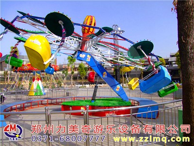 雙人飛天造型新穎,氣勢(shì)雄偉,壯觀,融驚險(xiǎn)性與趣味性為一體。游人在懸掛的座椅中隨著轉(zhuǎn)盤傾斜回轉(zhuǎn)轉(zhuǎn)動(dòng),飛上旋下,好不驚險(xiǎn)的刺激,親自一試方能體驗(yàn)它的無窮樂趣。同時(shí),它又鍛煉和培養(yǎng)青少年勇敢頑強(qiáng)的精神的工具,是娛樂和科學(xué)的有機(jī)結(jié)合,適合各種游樂場,公園等娛樂場所使用,深受廣大游客的喜歡和歡迎!