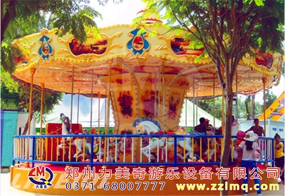 兒童游樂設(shè)施旋轉(zhuǎn)木馬或回轉(zhuǎn)木馬游樂場機(jī)動游戲的一種,即旋轉(zhuǎn)大平臺上有裝飾成木馬且上下移動的座位供游客乘坐。記錄的旋轉(zhuǎn)木馬出現(xiàn)于拜占庭帝國時期。約1860年歐洲出現(xiàn)名列前茅個以蒸汽推動的旋轉(zhuǎn)木馬。旋轉(zhuǎn)木馬成為每個大人孩子心中的童話世界不可缺少的裝飾,如今在各大小游戲場、商場等地方皆有各式旋轉(zhuǎn)木馬。